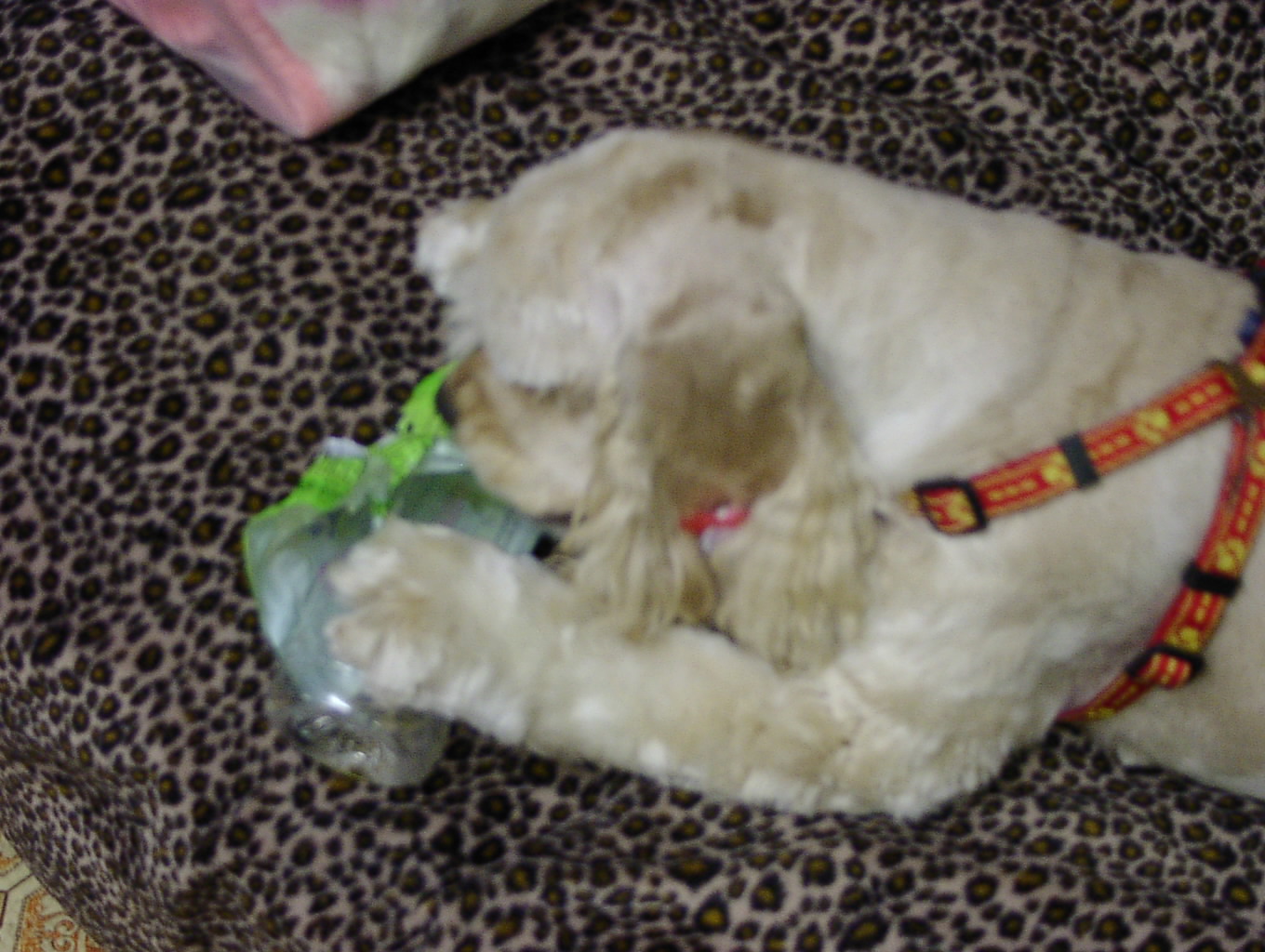 でもドッグフードがなくなると、いつもの『レディ子スイッチ』ONです。もう大騒ぎ。事務所にあったペットボトルは瞬く間に勝負に負けて“丸裸にされてしまいました。