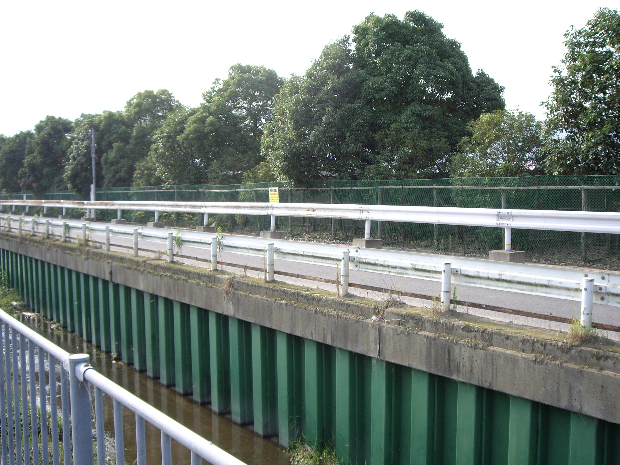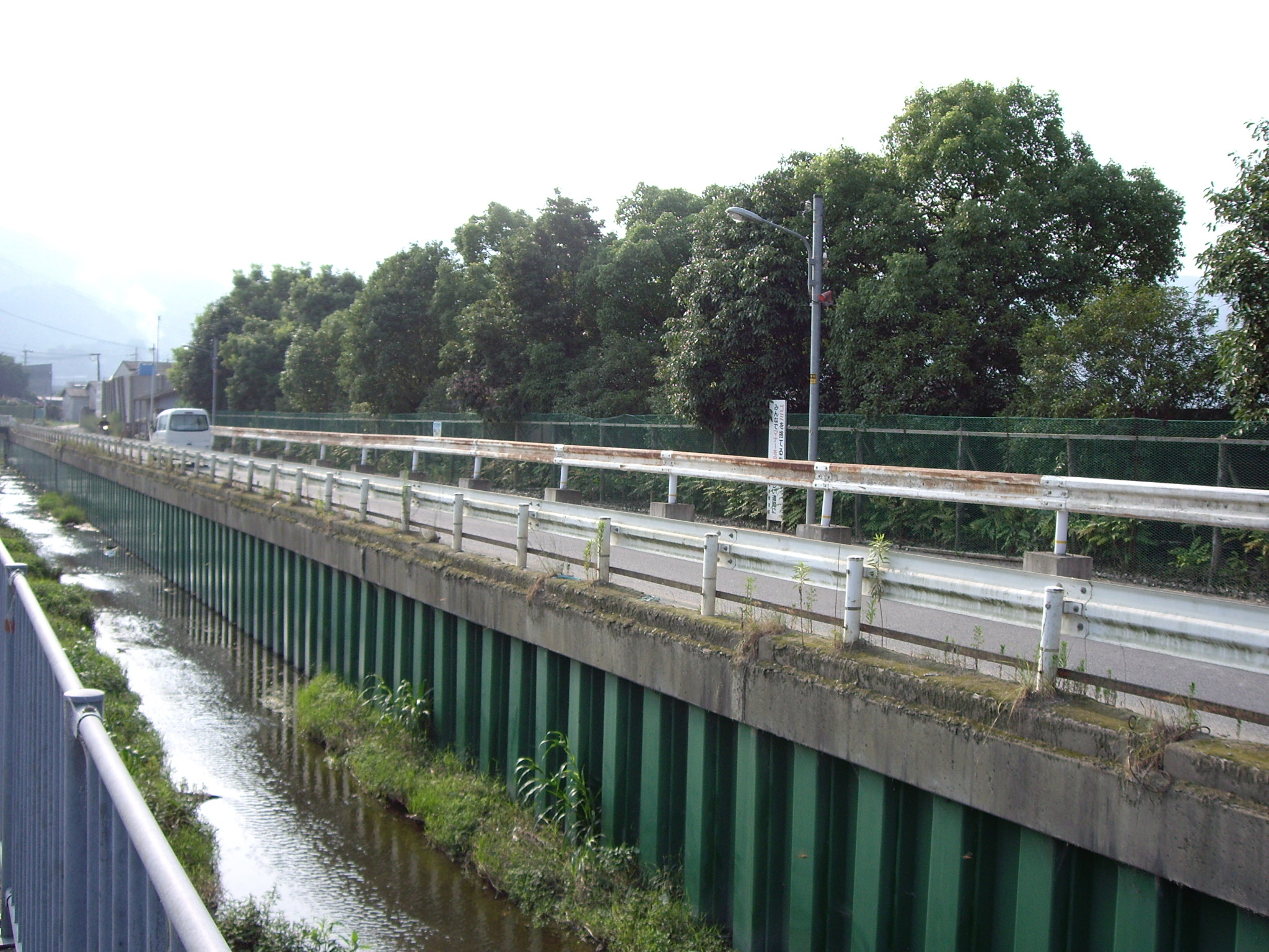 不法投棄対策のため、川向こうの道路にはガードレールが新たに設置されてしまいました。