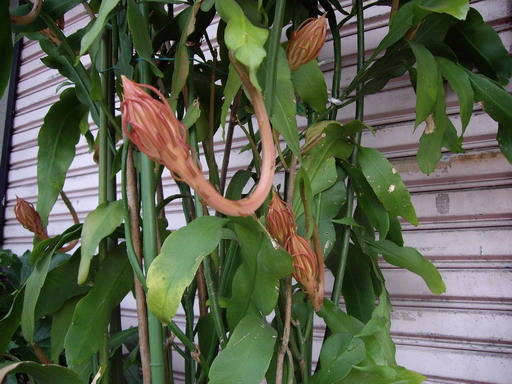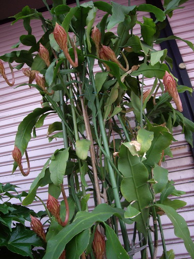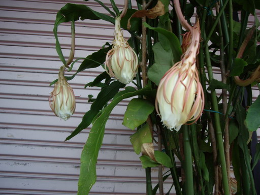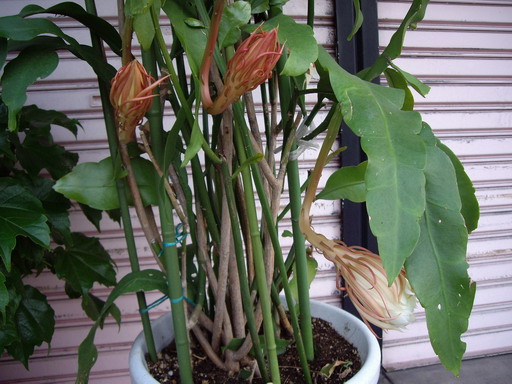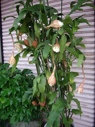 近所の美容院の前においてある月下美人の植木鉢に沢山の蕾を発見。