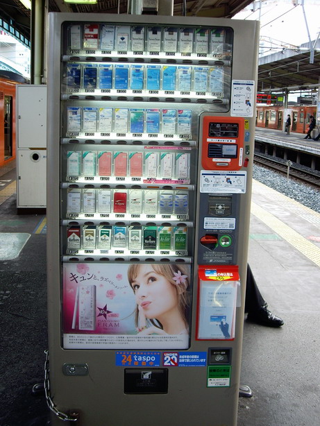 営業利益UP(お金儲け)の為とは言え、やってはいけない行動のように感じます。タバコの自動販売機の設置場所は改札口付近へ移動させては如何でしょうか?