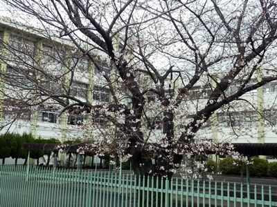 大阪府立みどり清朋高校の西門横のソメイヨシノ桜は、低位の枝で開花がはっきりとしてきていました。