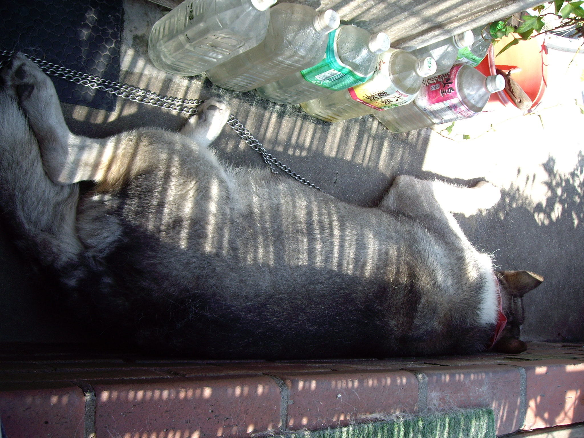 交換してから数日、鎖が長くなったお陰でジュディーの寝そべり可能エリアもかなり広がりました。