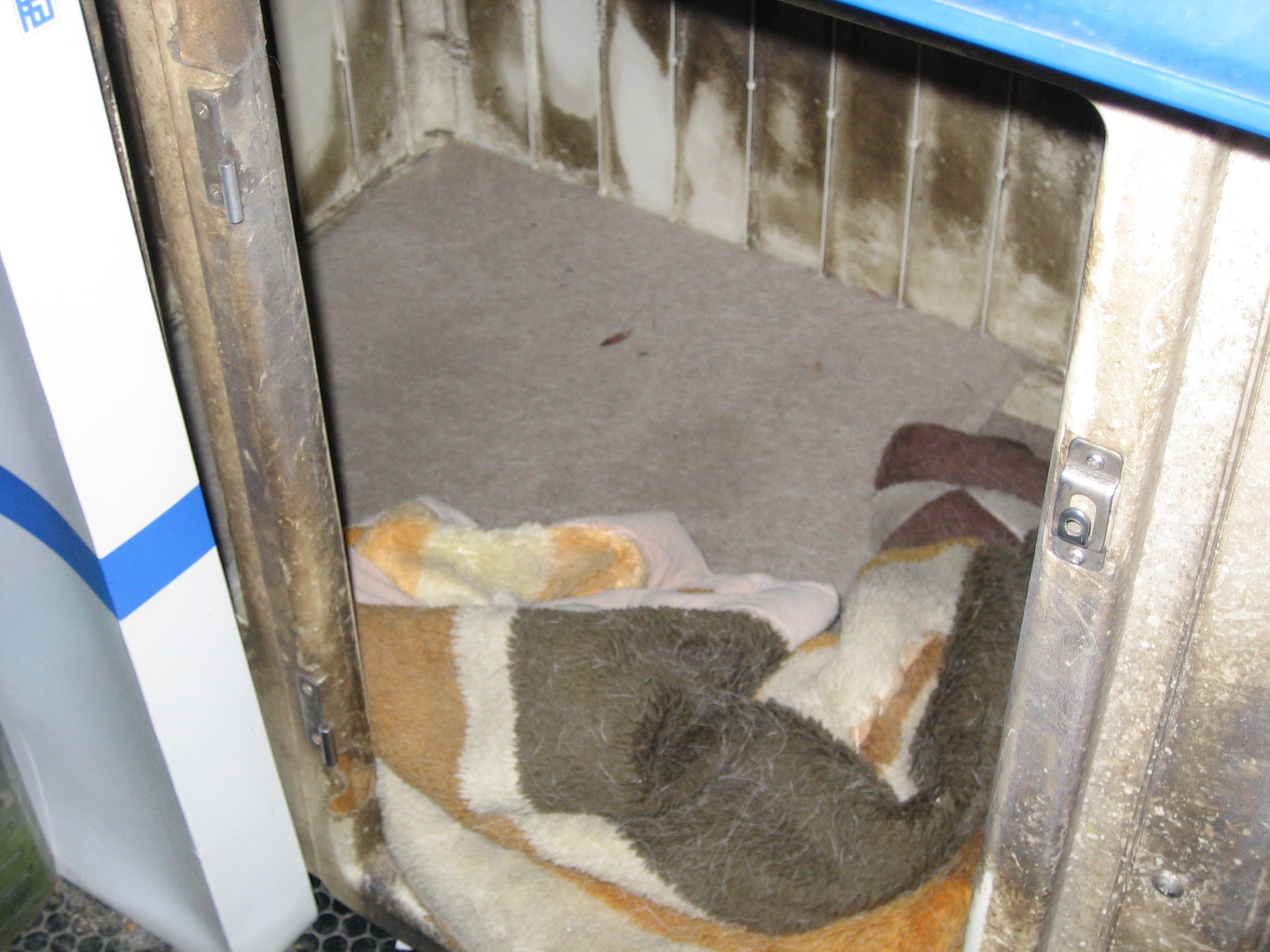 小屋の中にはペット用?の断熱カーペットを敷いた上に毛布を敷いてやりました。これで一応暖は取れるはずです。