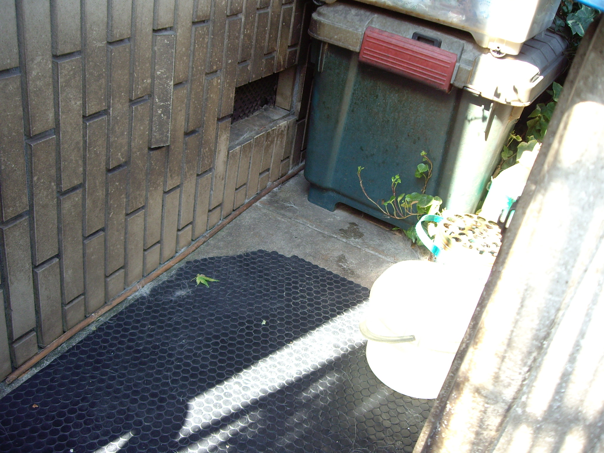 午前中、ジュディーはレンガの花壇(だった場所)が作る“影”に入って涼みます。