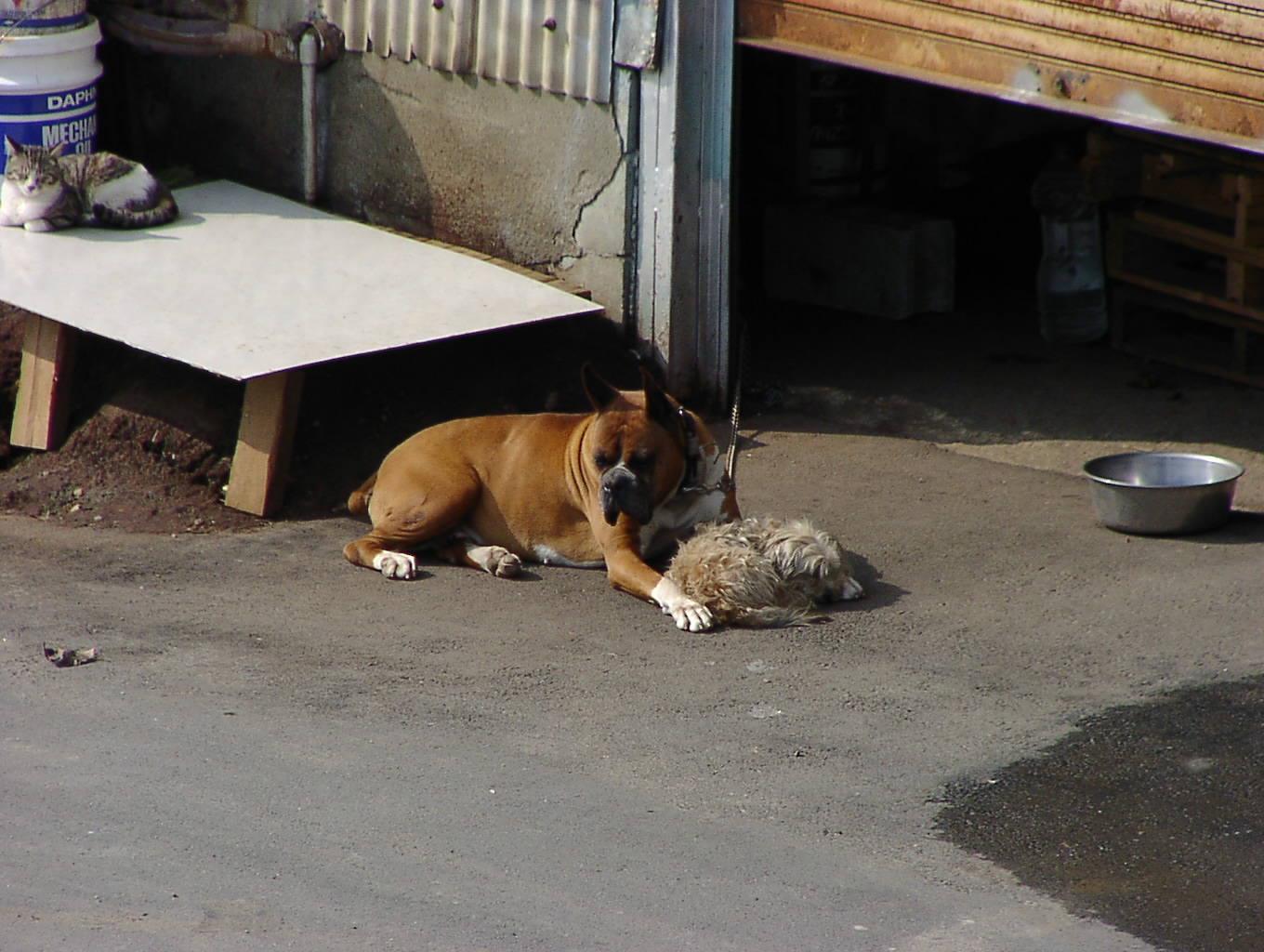 ボクサー君やもう一匹のワンコ(こいつについては我々も呼び名を付けていないので・・・)は成犬の大きさになってからここへ貰われてきました。
