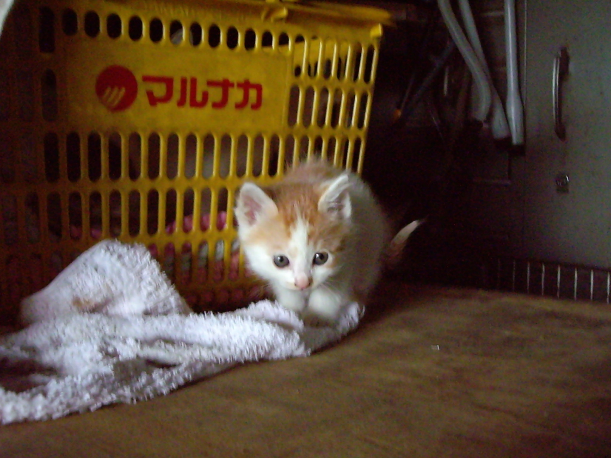 当然追い出されるので、母猫は1匹ずつ銜えてどうやら傍の物置の中へ移動したようなのですが、結局見つかり、これまた田中さんの所へ押し付けてきたそうです。