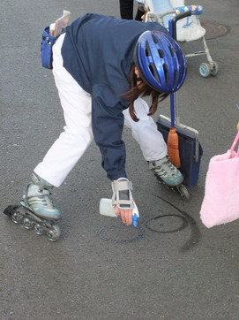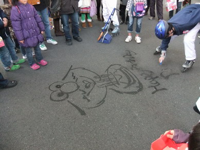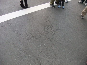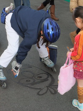 再び大屋根の下まで来た所、今度は別のスウィーパーさんがセサミストリートに登場するエルモらしきキャラを道路に描いていました。