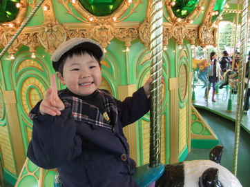 興奮冷めやらない状態でメリーゴーランドを離れました。(案の定、出口で転びました)