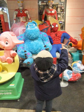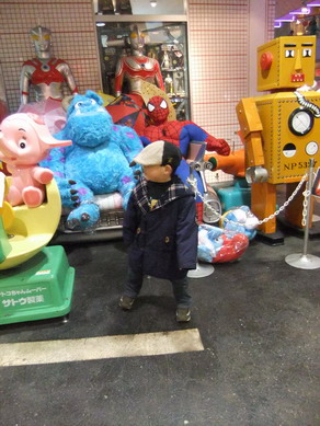 アメリカのキャラクター雑貨やフィギュアを売っているお店の前ではウルトラ兄弟やモンスターズインクのキャラクターが出迎えていました。