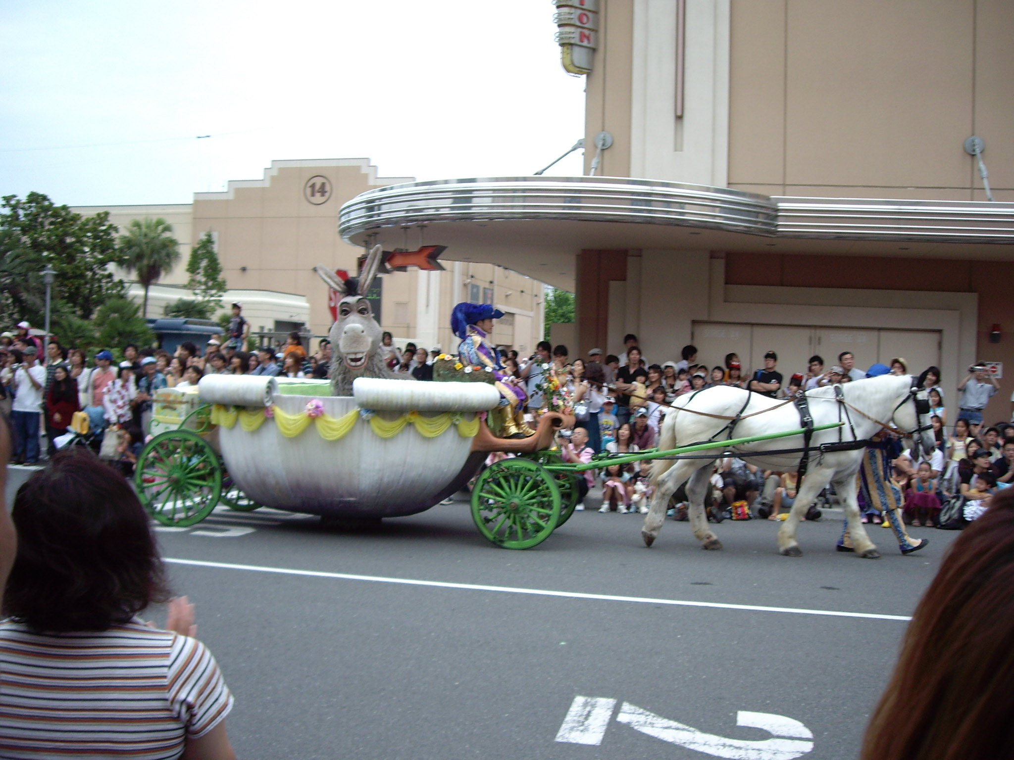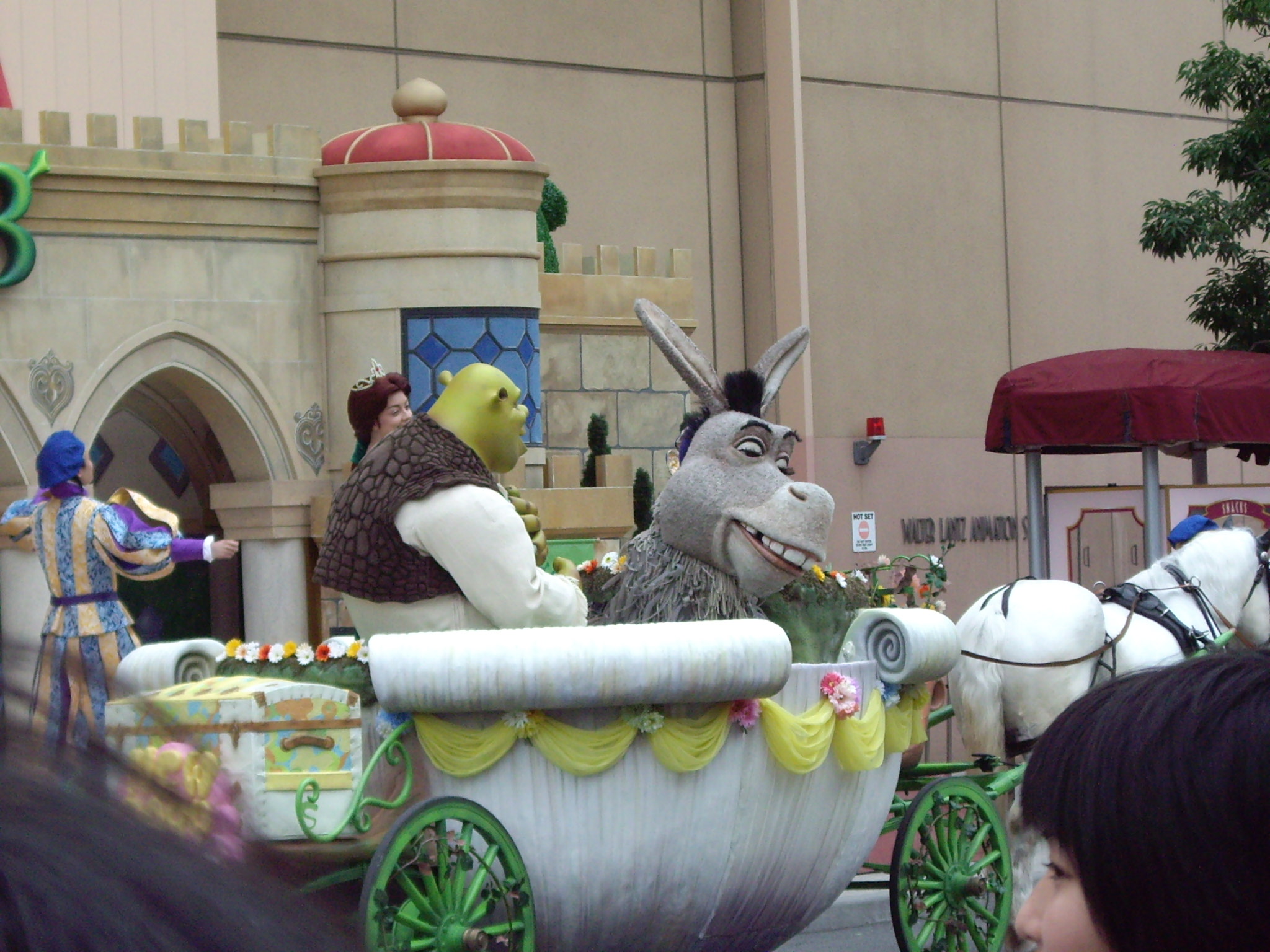そしてシュレックファミリーはこの馬車に乗り込み、他のキャラクターたちと共に、パーク内をパレードして行きます。