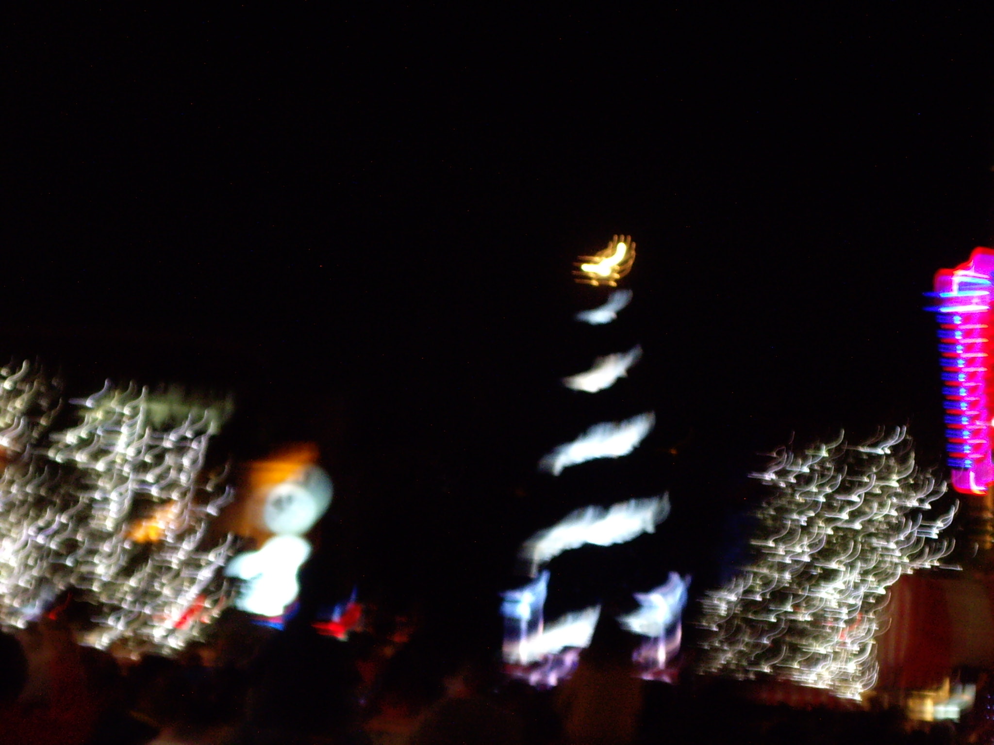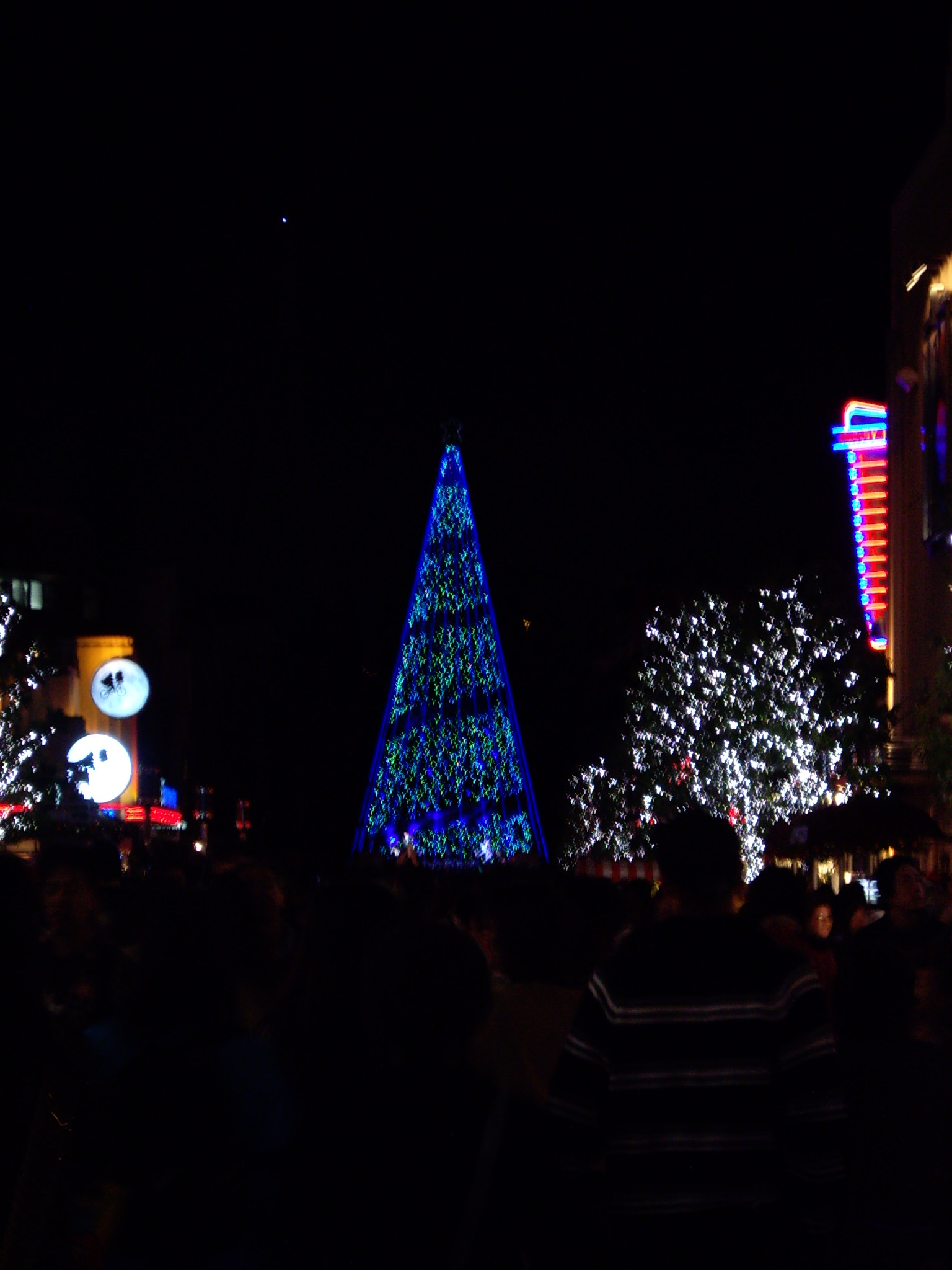 まず螺旋状の光がツリーの下から上に向かって点灯され、その後ツリー全体が点灯しました。